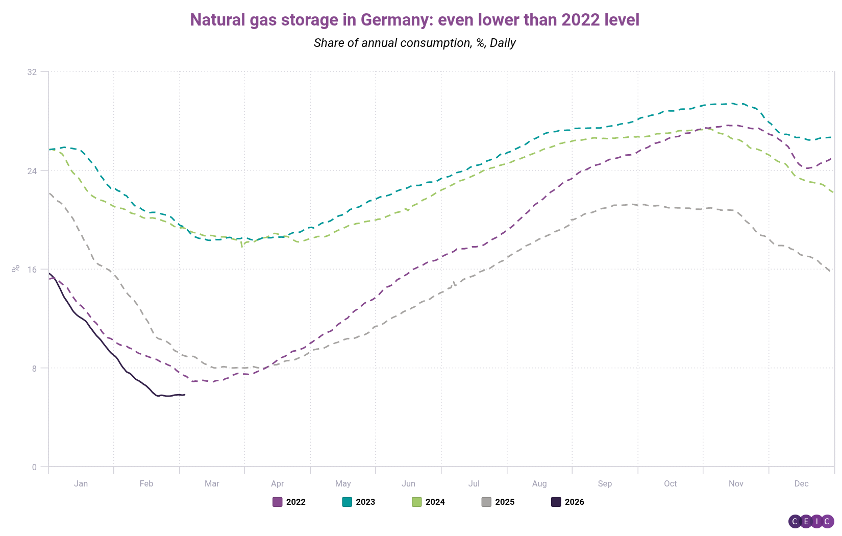 Between the luck of warmer weather and an increased focus on seaborne liquefied natural gas imports, Europe replenished its reserves. But after a tough US winter in 2025-26, prices spiked, global markets tightened and Europe's reserves have sunk back to 2022 levels. In Germany, reserves are even lower than they were before war broke out in Ukraine.